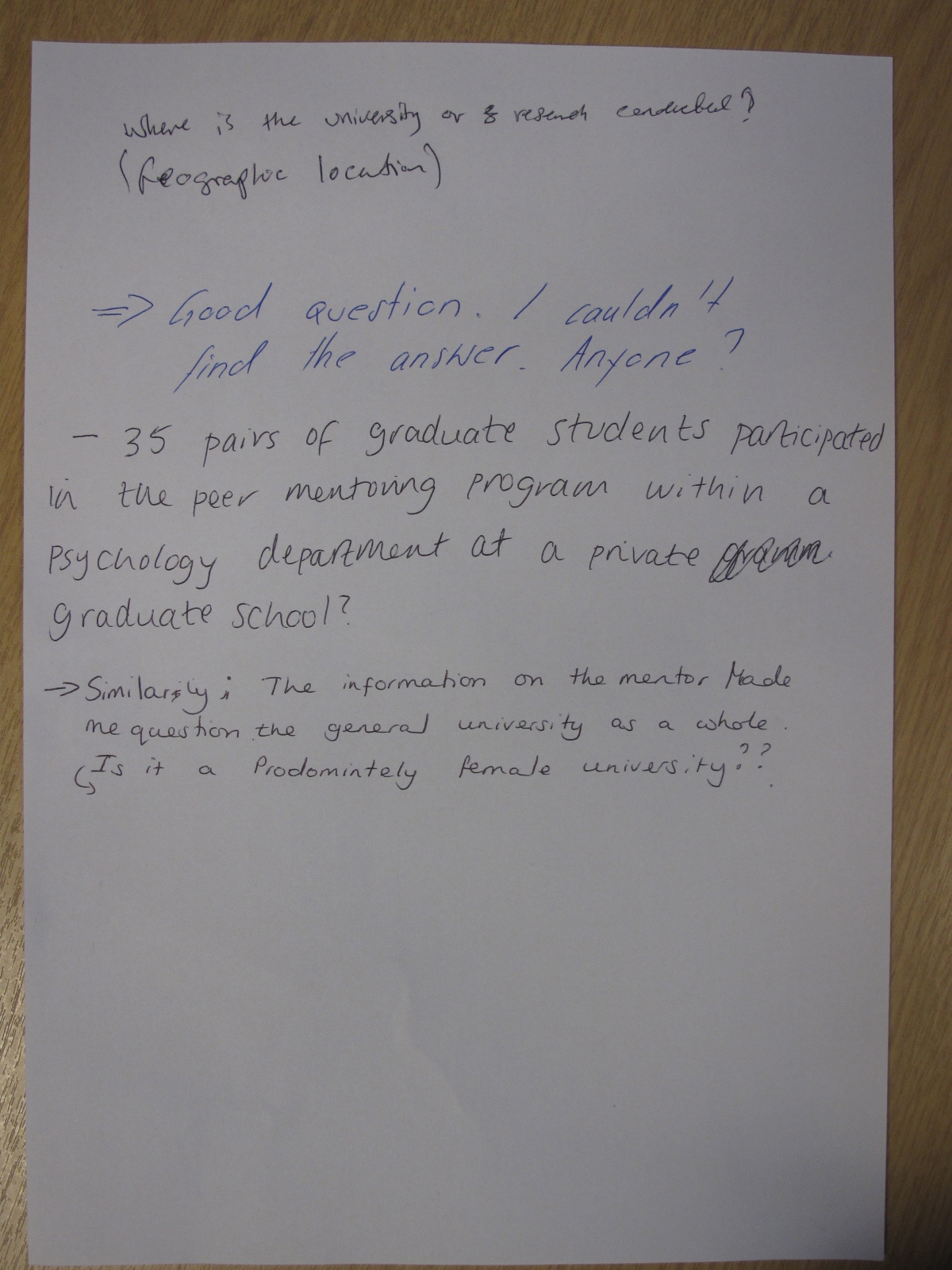 And these are the questions that mentors had when reading the article – plus the responses to their questions by their peers: