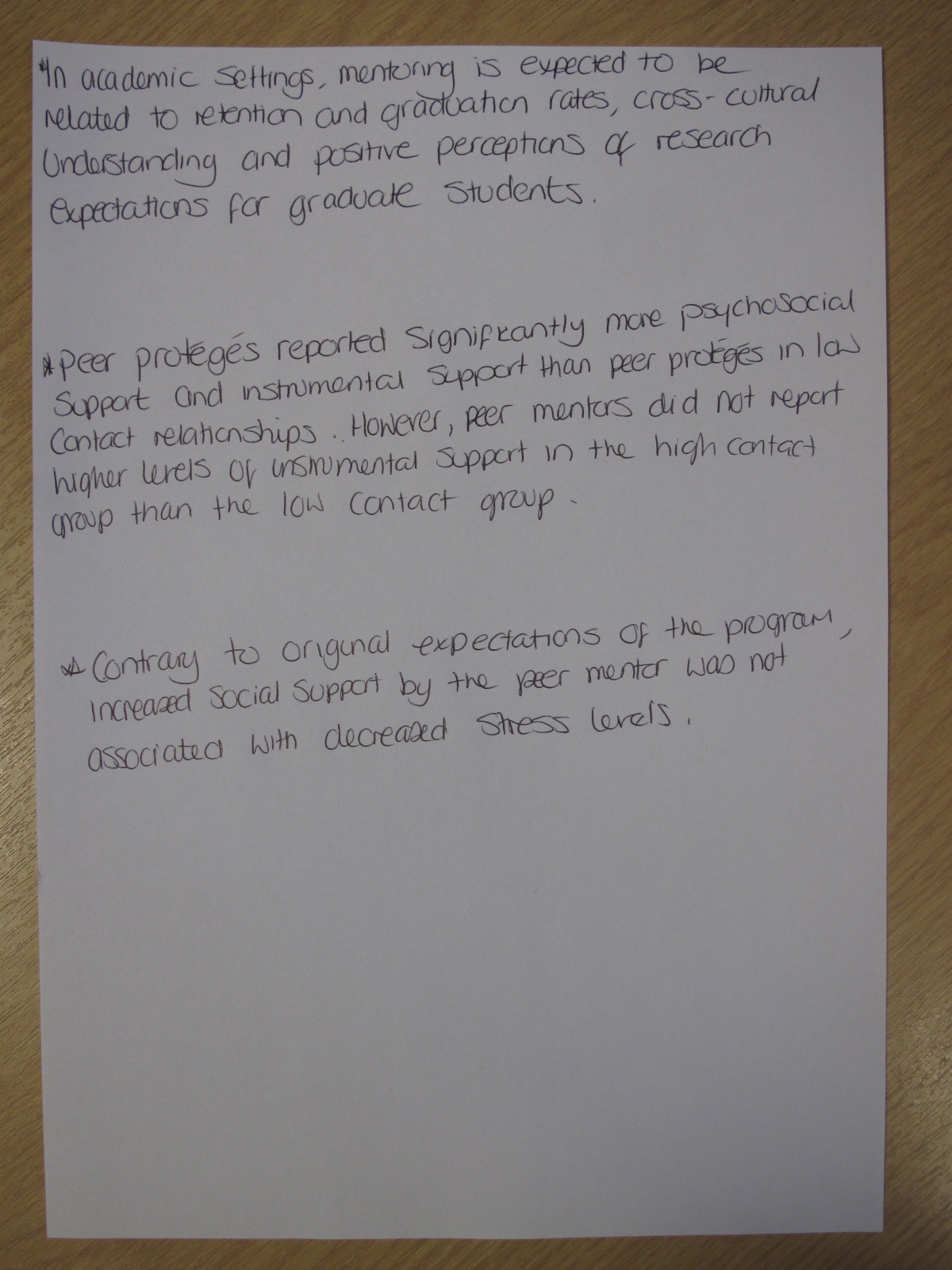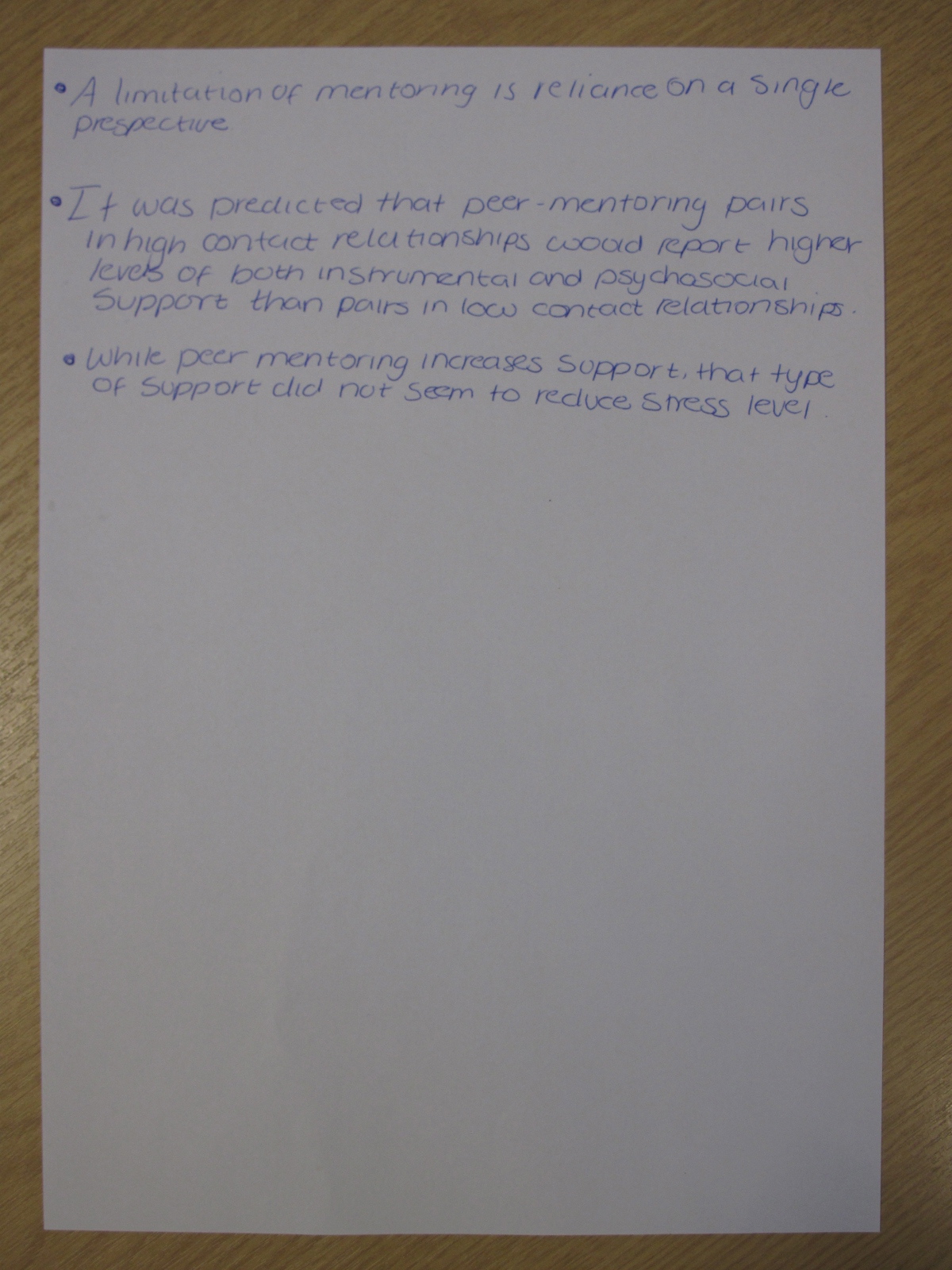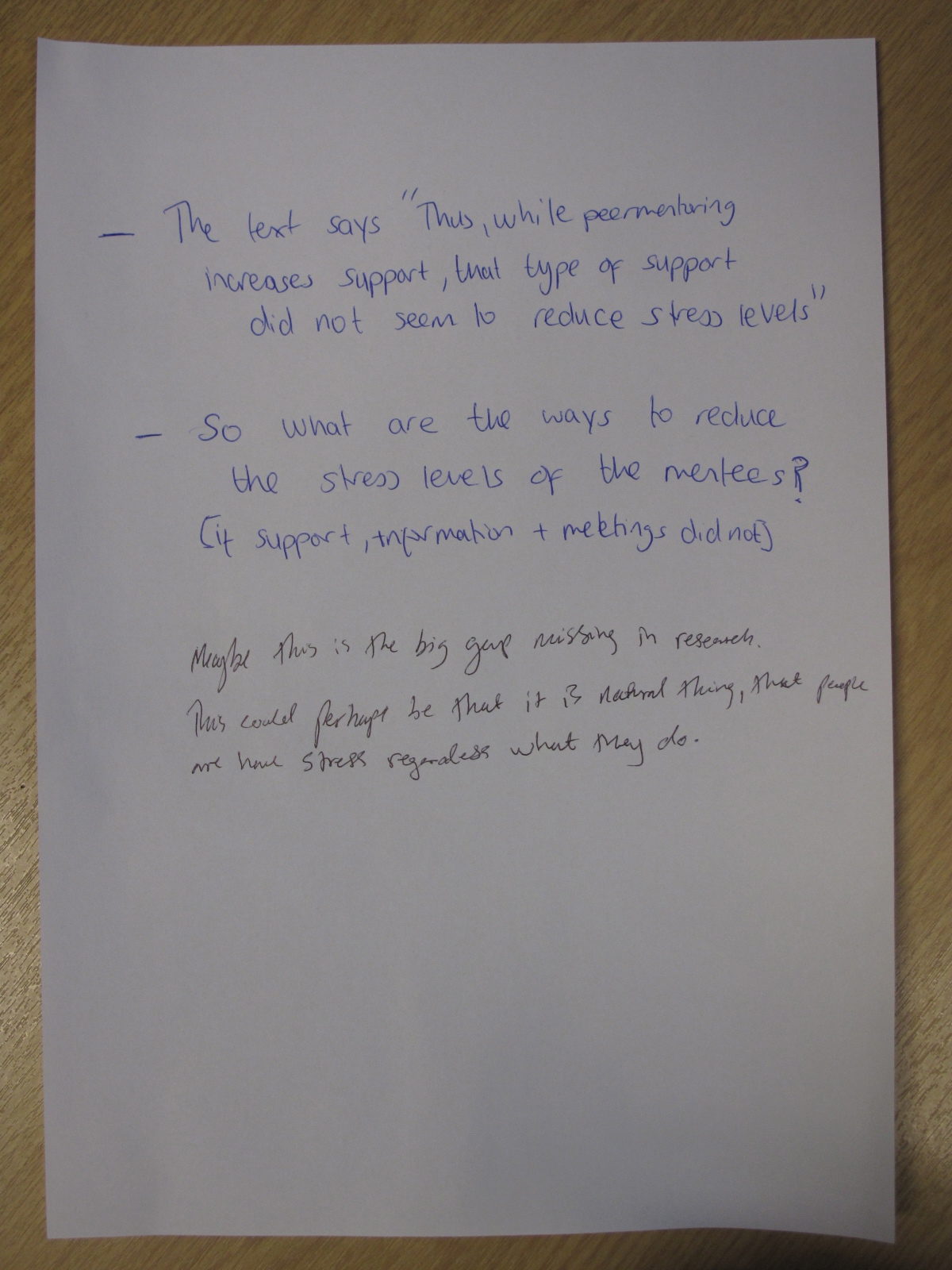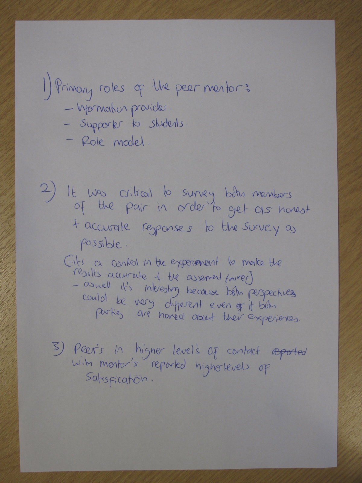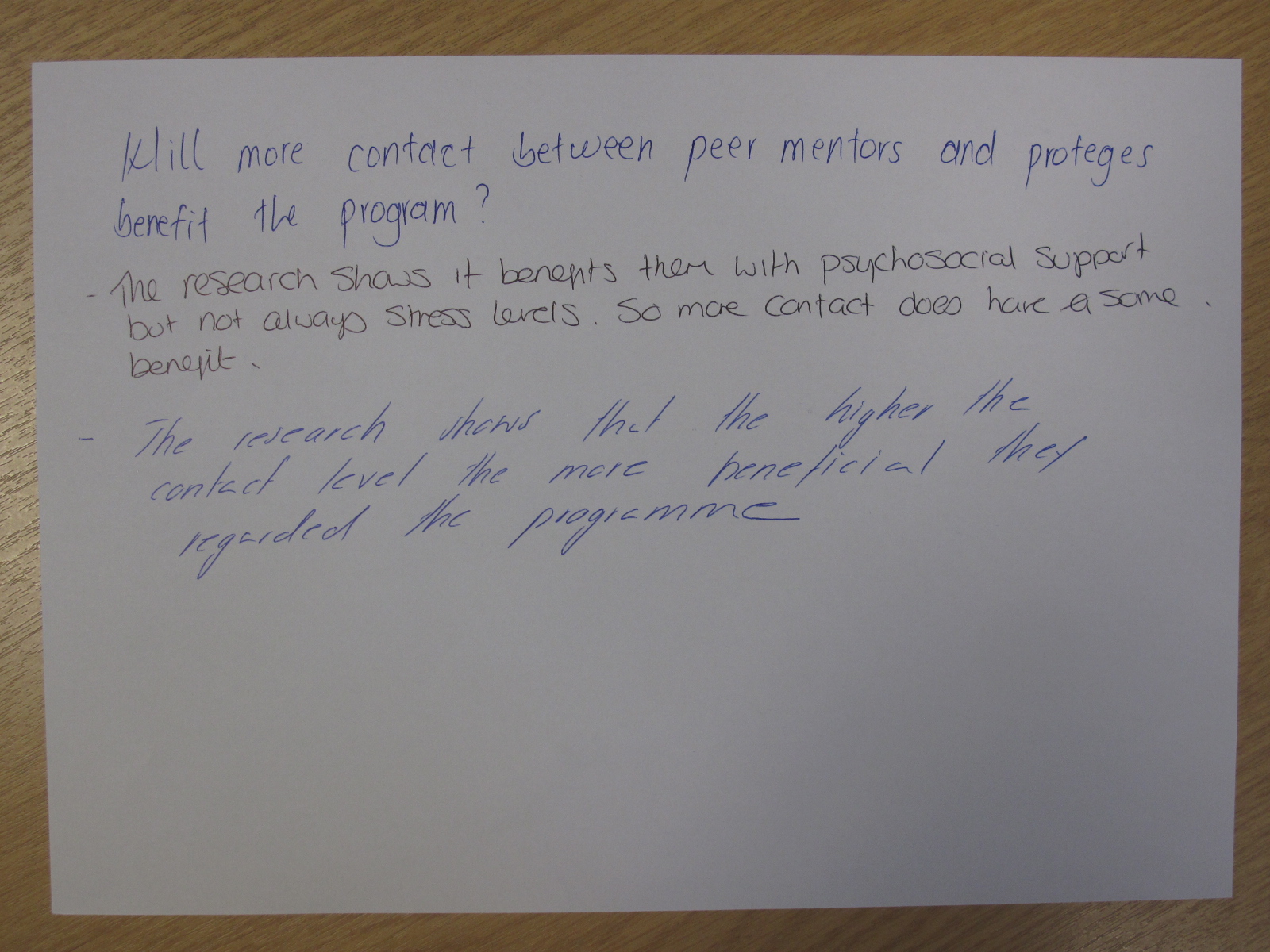 Today, we discussed an article which explores the effect of peer mentoring. A copy of the article – Effect of Peer Mentoring on Types of Peer Mentor Support, Program Satisfaction and Graduate Student Stress: A Dyadic Perspective by Elisa J. Grant-Vallone and Ellen A. Ensher – can be found here.